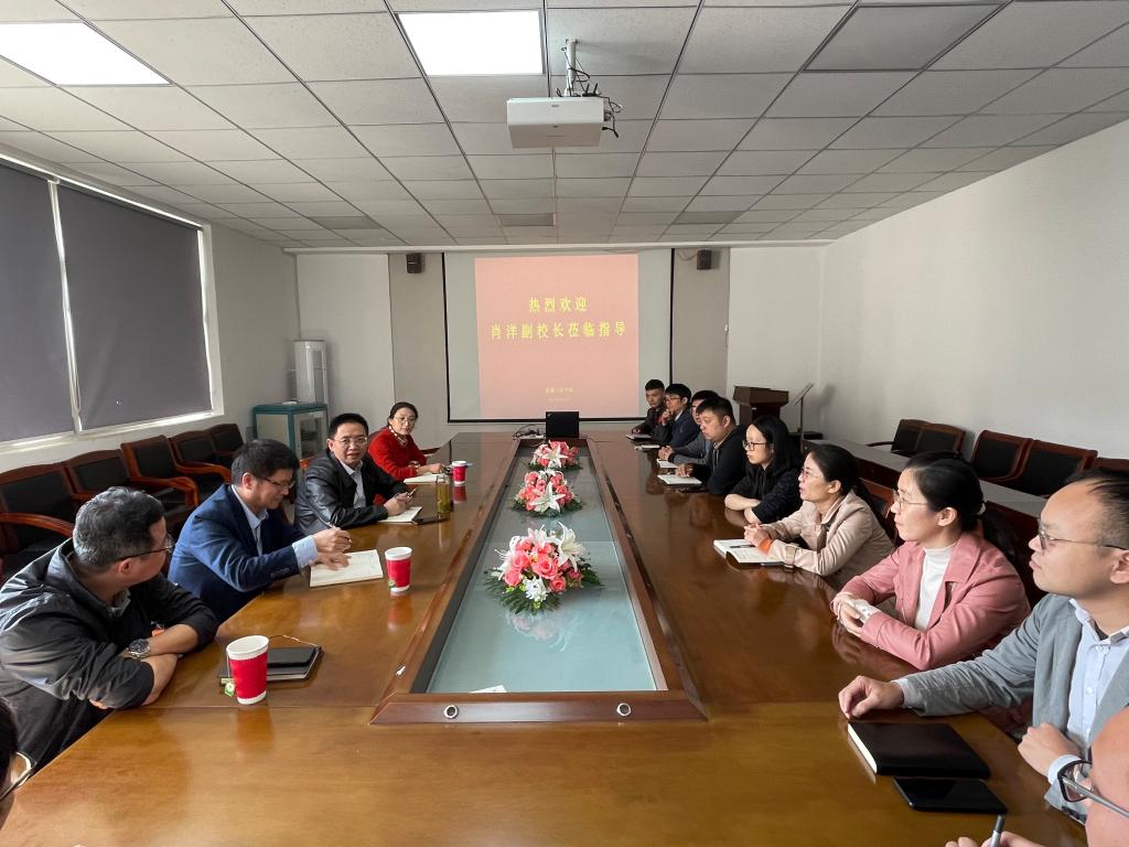 近日,肖洋副董事长来到太阳成集团122ccvip进行走访,与对接联系的课程群的老师们和员工宿舍的同学们座谈交流。公司领导朱其新、伯洁、曹自洋陪同出席。