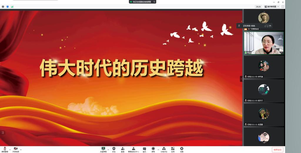 为深入学习宣传贯彻党的二十大精神,推动二十大精神入脑入心,按照“形势与政策”课教学计划安排,公司领导班子全体成员周刚书记、朱其新经理、伯洁副书记、曹自洋副经理、蒋全胜副经理深入班级,走上云端,为同学们上了一堂堂有深度、有温度、有特色的线上“形势与政策”课。