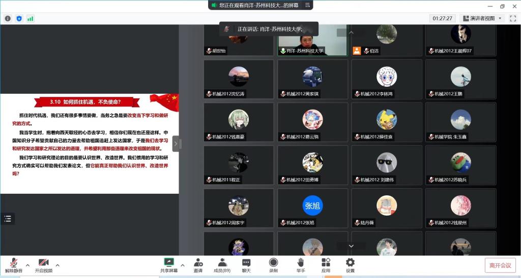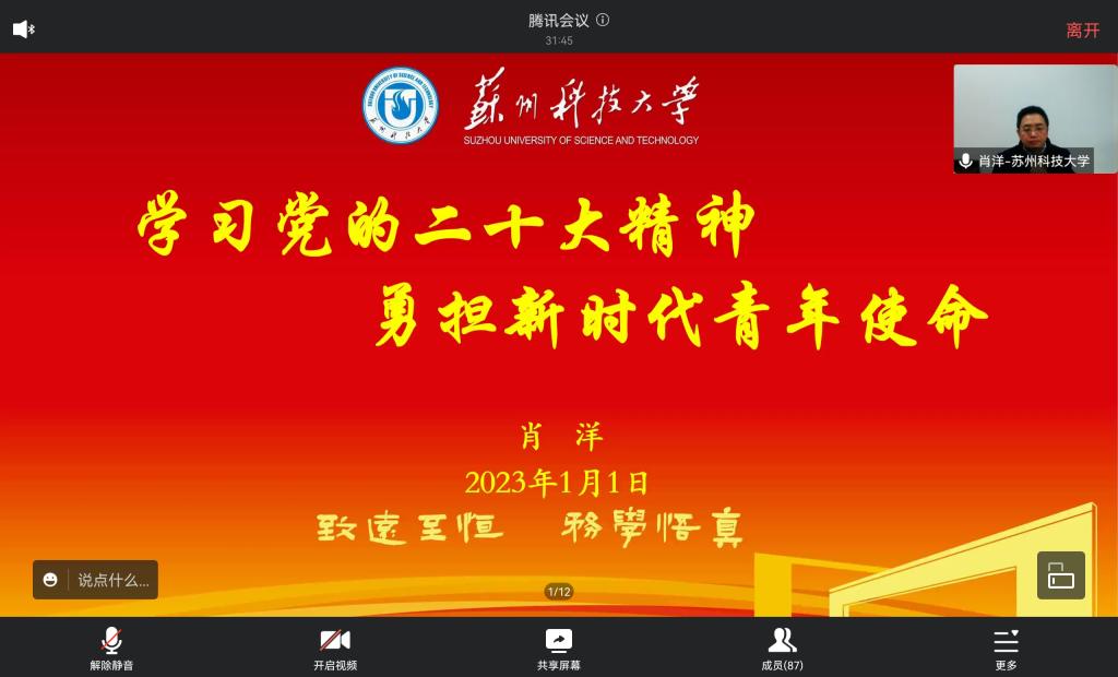 为深入学习宣传贯彻党的二十大精神,进一步推进“形势与政策”课程改革,2023年1月1日上午10:00,副董事长肖洋与数学科学公司和太阳成集团122ccvip2020级员工相聚云间,为两院学子讲授了以“学习党的二十大精神,勇担新时代青年使命”为主题的形势政策课。