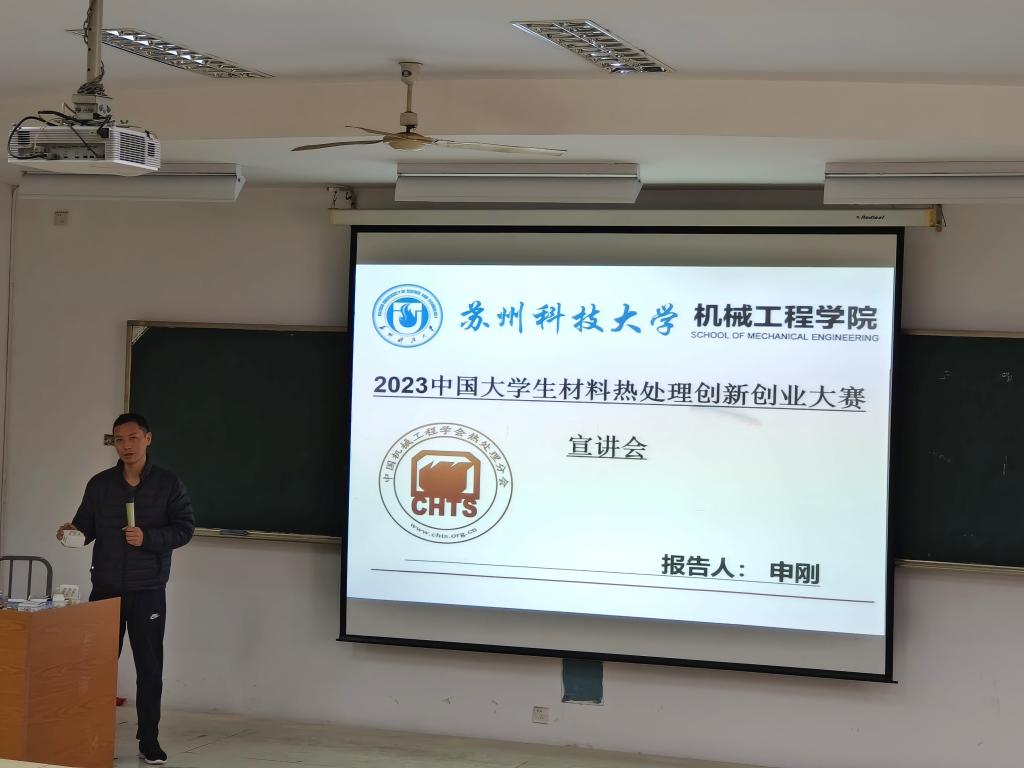 为加强同学们对于老员工材料热处理创新创业大赛的了解,3月29日,大赛宣讲会在天平校区第四教学楼J15教室顺利展开,此次宣讲会由申刚老师主持。