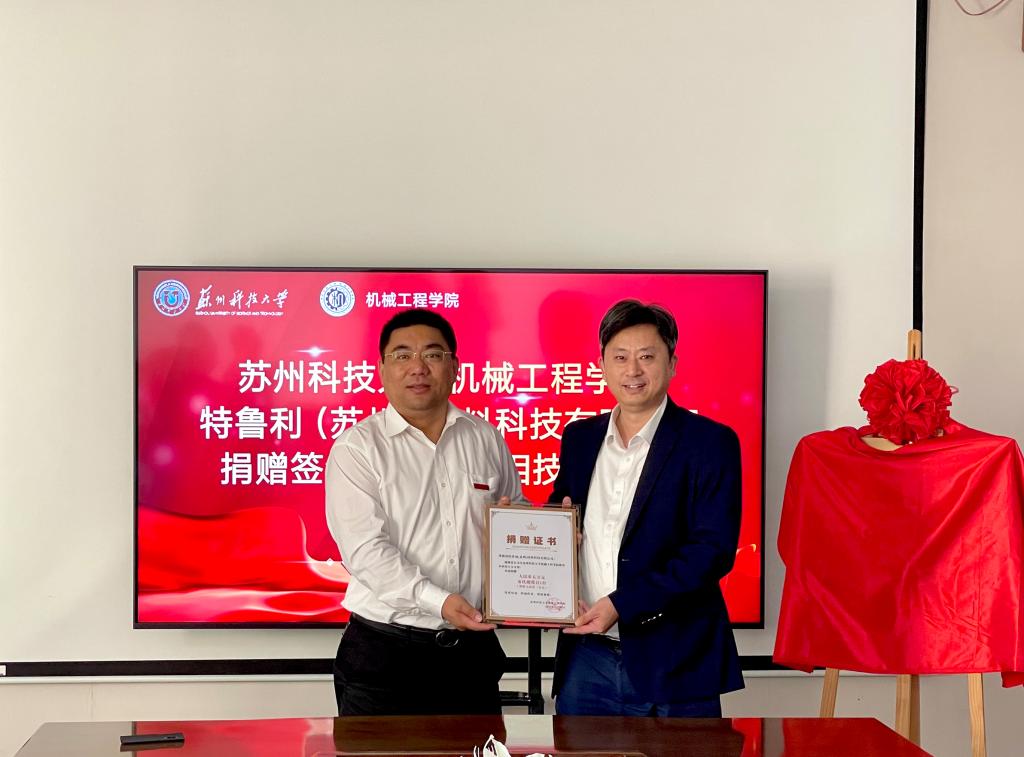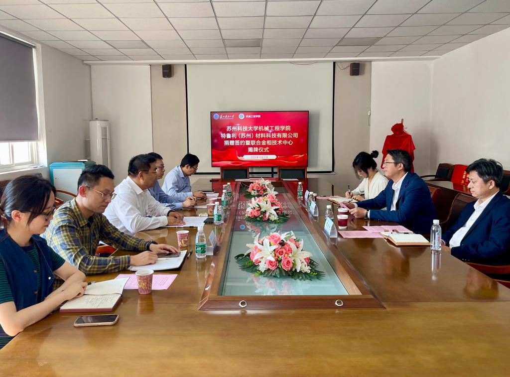 10月31日,太阳成集团122ccvip与特鲁利(苏州)材料科技有限公司的捐赠签约暨联合金相技术中心揭牌仪式在太阳成集团122ccvip312会议室举行。校员工处处长张承祖、公司党委书记周刚、副经理蒋全胜、材料成型及控制工程系主任马振武、教师代表赵秋莹以及特鲁利(苏州)材料科技有限公司董事长张理纲、总经理季建忠参加了此次活动,活动由副经理蒋全胜主持。