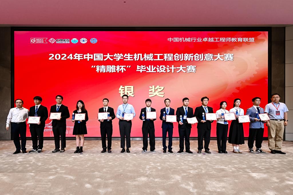 “精雕杯”毕业设计大赛由教育部高等教育司与教育部高等公司机械类专业教学指导委员会指导,中国机械行业卓越工程师教育联盟和中国机械工程学会共同主办,被列入全国普通高校学科竞赛排行榜。本届大赛收到来自清华大学、上海交通大学、浙江大学、哈尔滨工业大学、西安交通大学等123所国内知名高校的1143项作品。经过234名高校和企业专家的评审,最终有99所高校的228项优秀作品进入全国总决赛。经过激烈角逐,最终评选出个人金奖1项、团队金奖1项,个人银奖9项、团队银奖1项,铜奖24项,优秀奖60项,佳作奖132项,最具商业价值奖和最佳人气奖各1项。