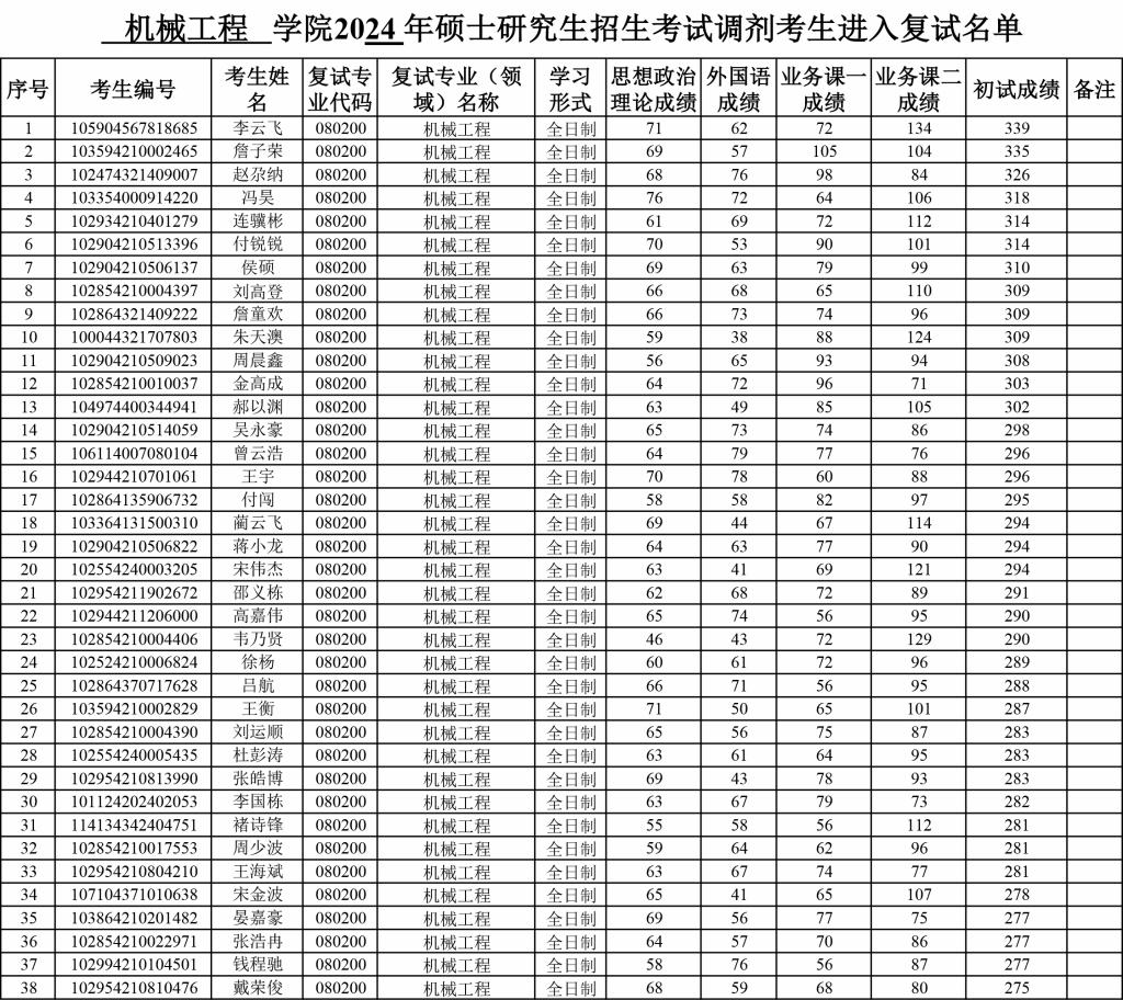 太阳成集团122ccvip2024年硕士研究生招生考试调剂考生进入复试名单