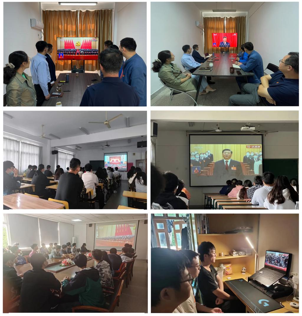 在场收看直播的师生聚精会神,认真学习领会大会精神。开幕会直播结束后,师生们欢欣鼓舞,倍感振奋,反响热烈。大家一致表示,党的二十大是在全党全国各族人民迈上全面建设社会主义现代化国家新征程、向第二个百年奋斗目标进军的关键时刻召开的一次十分重要的大会。习近平总书记作的报告,全面总结了过去五年的工作和新时代10年的伟大变革,科学谋划未来五年乃至更长时期党和国家事业发展的目标任务和大政方针,提出一系列新思路、新战略、新举措,是指导我们全面建设社会主义现代化国家、向第二个百年奋斗目标进军的纲领性文献。党员干部表示,将不忘立德树人初心,牢记为党育人、为国育才使命,认真履职尽责,以实际行动学习好、宣传好、贯彻好党的二十大精神。青年员工表示,将坚定不移听党话、跟党走,让青春在全面建设社会主义现代化国家的火热实践中绽放绚丽之花。