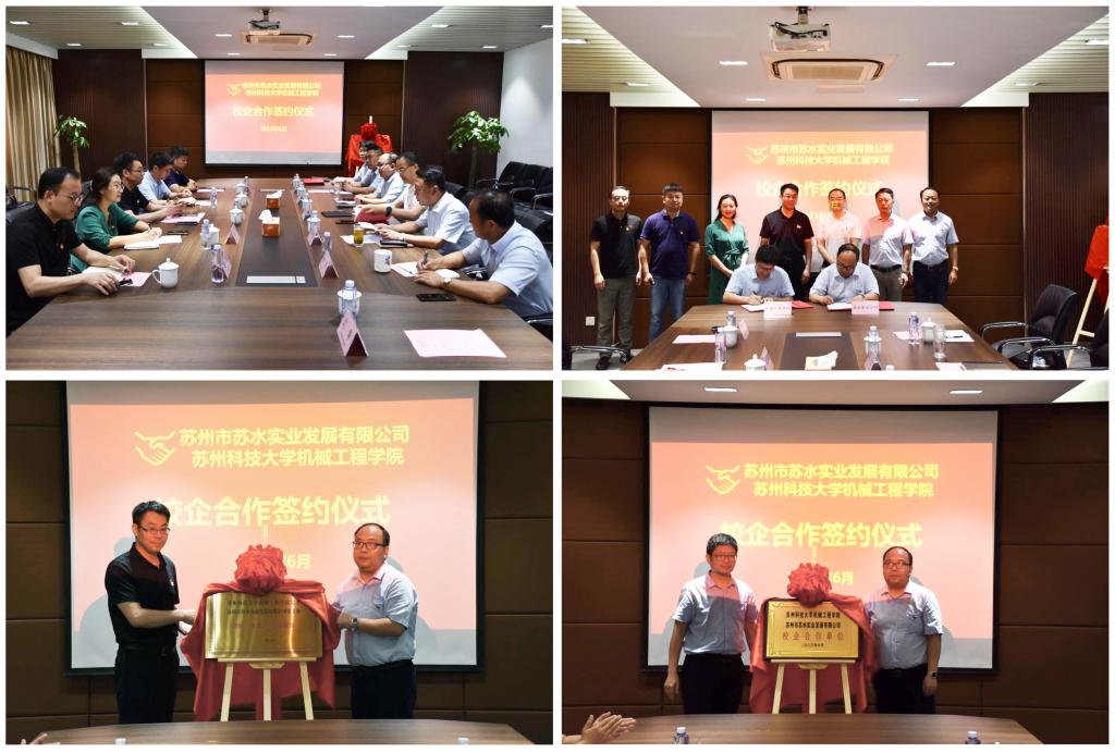 苏水实业公司董坚董事长和公司朱其新经理分别讲话,相互介绍了企业概况和公司技术、人才等优势,表示将坚持资源共享、优势互补、工学联合,在产学研合作、人才培养等方面相互配合、积极协作,全力推动校企合作落地见效。
