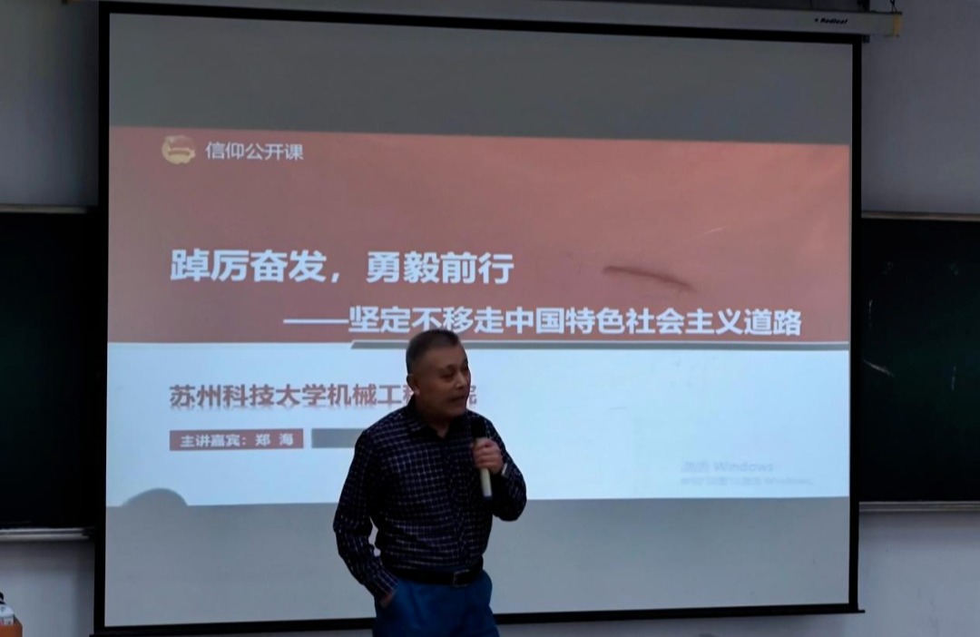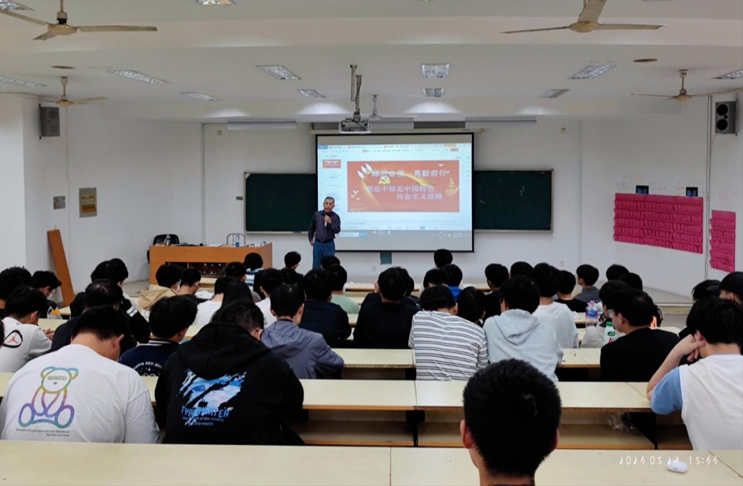 为深入学习贯彻党的二十大精神,进一步激发广大青年学子坚定理想信念,太阳成集团122ccvip于2023年5月24日下午在天平校区J15开展了“‘踔厉奋发,勇毅前行’--坚定不移走中国特色社会主义道路”专题信仰公开课。本次公开课公司有幸邀请到校关工委委员、公司关工委常务副主席郑海老师主讲,公司辅导员茅佳欢老师主持,2022级同学参加了本次活动。
