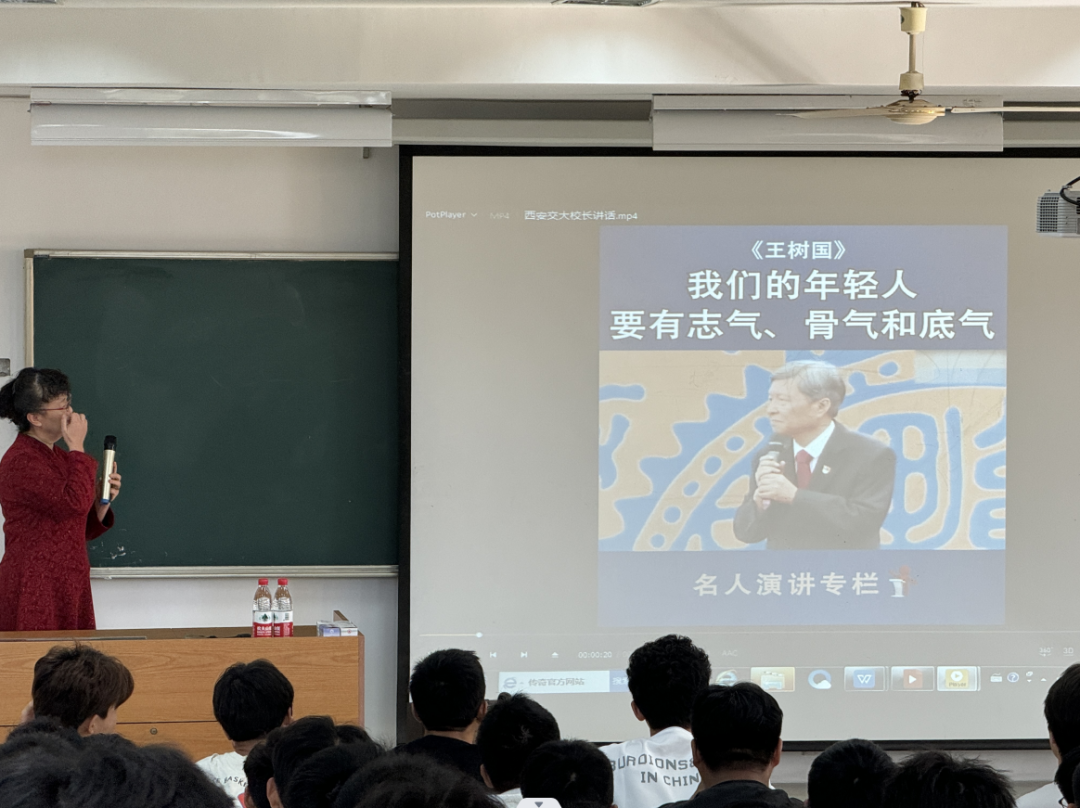高老师借西安交大董事长王树国在2021年员工毕业典礼上的演讲,告诫我们年轻人要有志气、骨气和底气!指出志气源于家国情怀,是对国家和民族的忠诚与贡献;骨气源于文化自信和奋斗成果,没有自信的人没有骨气,软骨头挺不起民族脊梁;有能力、有贡献、有作为的人才有底气。希望我们能够做到这三点,传承西迁精神,承托起民族的希望和未来,成长为民族之脊梁,为人类命运共同体作出自己的贡献!