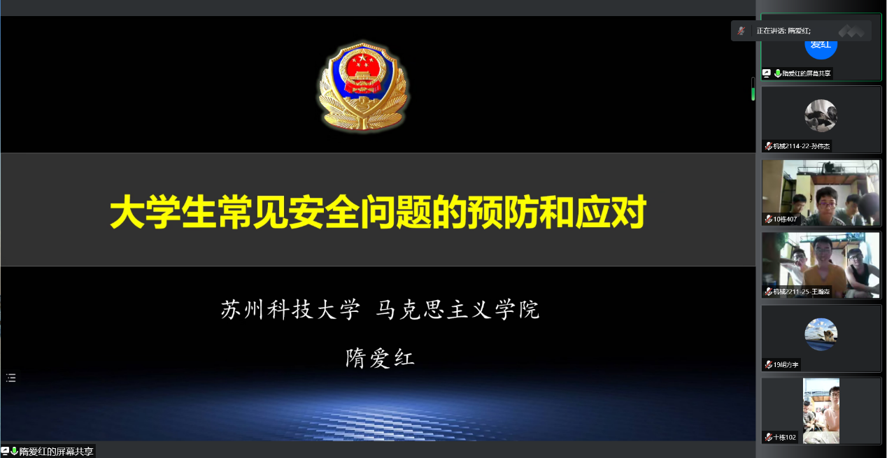 在讲座的中隋爱红总结出6个“一律”和8个“凡是”,告诫同学们遇到诈骗等如何防范被盗以及发现被盗后的应对方法,对火灾、毒品、交通事故和网络安全方面的防范做了进一步强调。