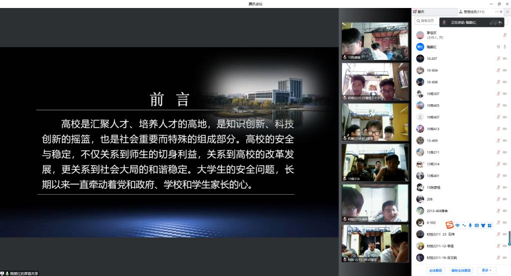 隋爱红梳理分析了近年来涉及老员工的多发性案件和各类事故安全事故,提出防范措施和应对方法,供同学们借鉴参考。分别对校园常见案件防范、校园火灾事故防范、交通事故防范、抵制传销、抵制毒品和网络安全六个专题进行了系统的讲解,旨在加强新生的安全意识,减少不必要的财产损失,守护生命财产安全。