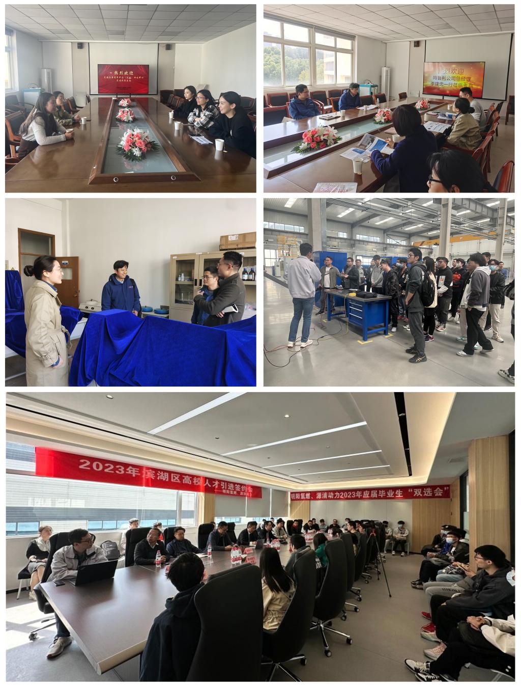领师生访企业,拓就业岗位。3月15日由公司副书记、副经理伯洁领队带领30余名公司2023届毕业生前往无锡,参加2023年滨湖区高校人才引进签约会,实地走访明阳氢燃动力科技有限公司、江苏源清动力技术有限公司,师生一行参观走访了公司的机械智能制造车间,近距离感受企业发展情况。在签约会上伯洁与公司领导、无锡市滨湖区人力资源和社会保障局相关负责人进行了深入交流,当天有5名同学与企业达成初步意向,签订就业协议。