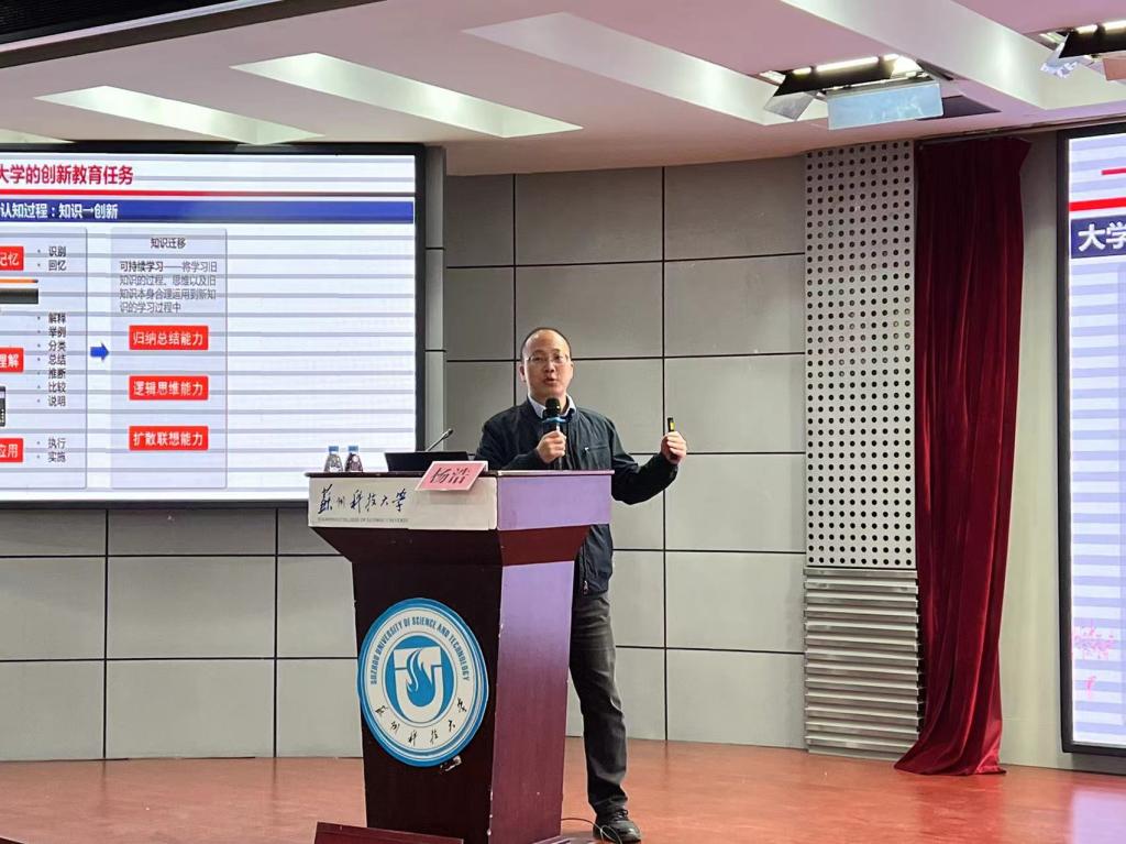 为贯彻落实党的二十大精神,激发创新创业青春活力,进一步公司提高青年师生科学素养与科创能力。近日,太阳成集团122ccvip开展“学习二十大·科创进行时”系列主题活动,首场活动邀请了苏州大学机电工程公司杨浩教授开展挑战杯竞赛专题培训会。公司青年教师、第十八届“挑战杯”老员工课外学术科技作品竞赛参赛团队成员和公司备战科创竞赛的员工等近百名师生参加了此次培训会,培训会由公司党委副书记兼副经理伯洁主持。